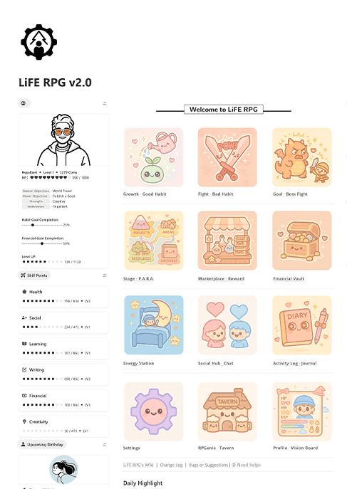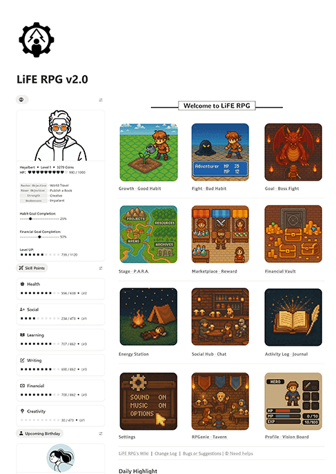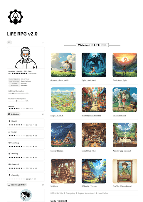 I'm the Notion Recommended Creator behind this Notion LiFE RPG templates.