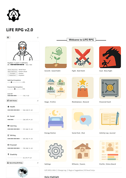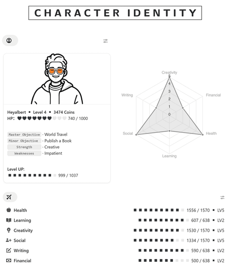 Learn how I built a real-life RPG system in Notion to gamify my life. This project is called LiFE RPG 2.0.The goal wasn’t to work harder, but to make growth feel more fun, visible, and motivating.